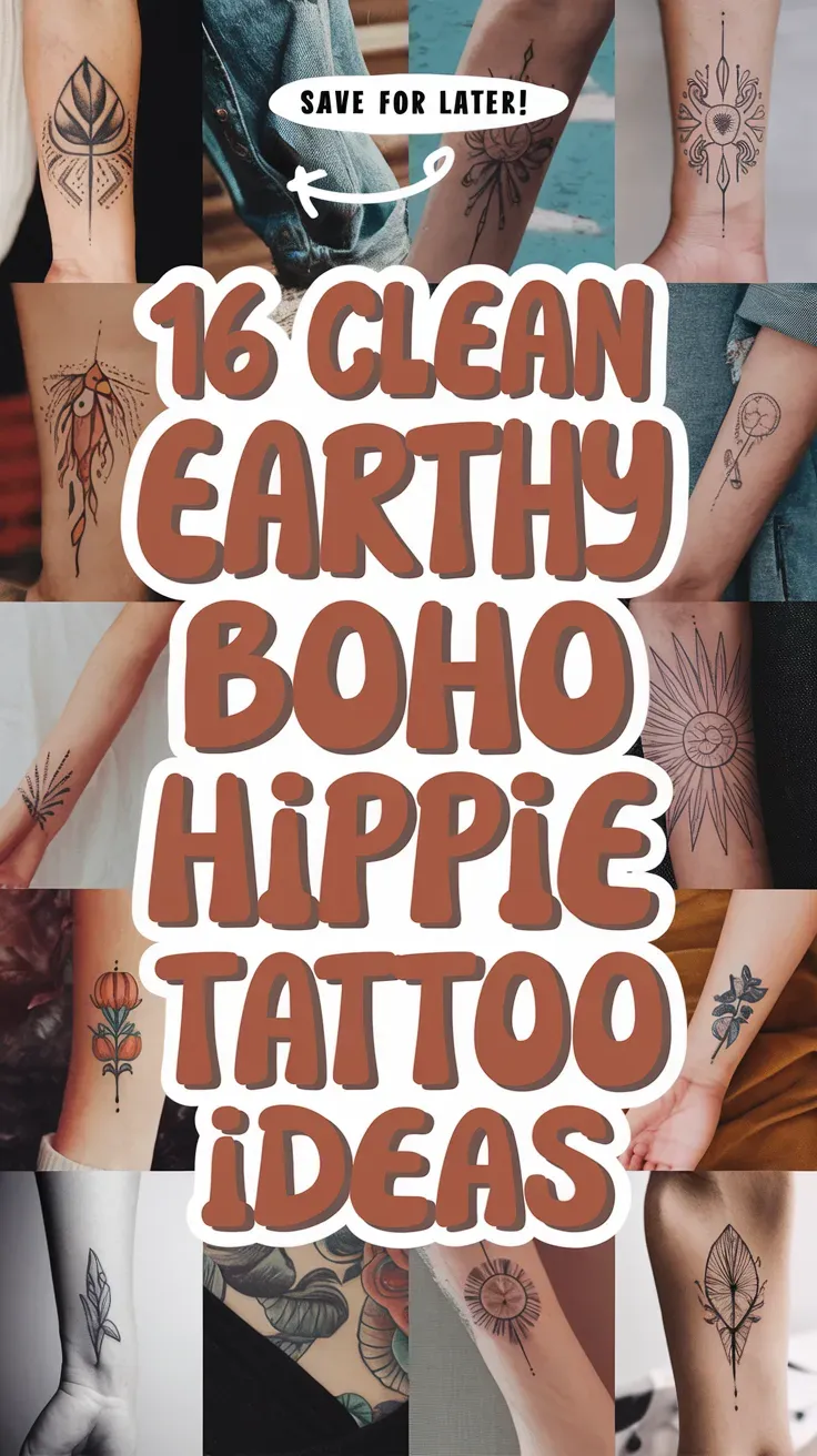 This list will help you find earthy boho hippie tattoo ideas that feel natural, feminine, and easy to save for later, with a mix of florals, moons, suns, crystals, and free-spirited details.