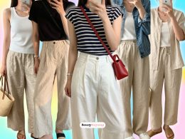2. Striped Polo Knit & White Barrel Pants