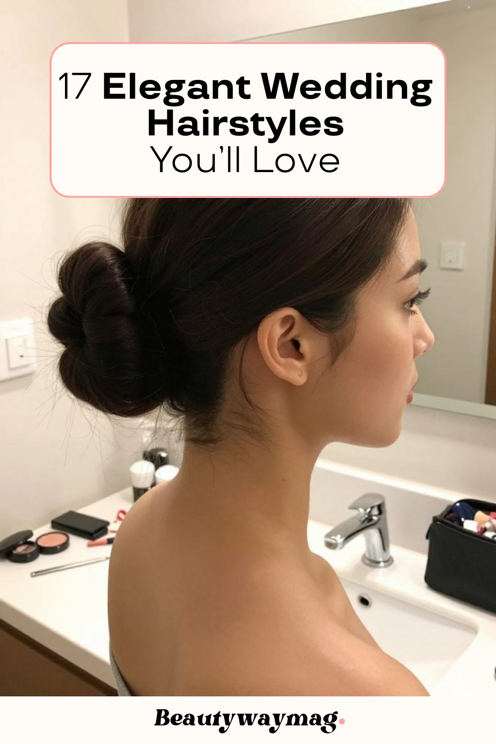 This is a classic elegant updo that looks amazing on long hair. It’s polished, timeless, and perfect for formal weddings.
